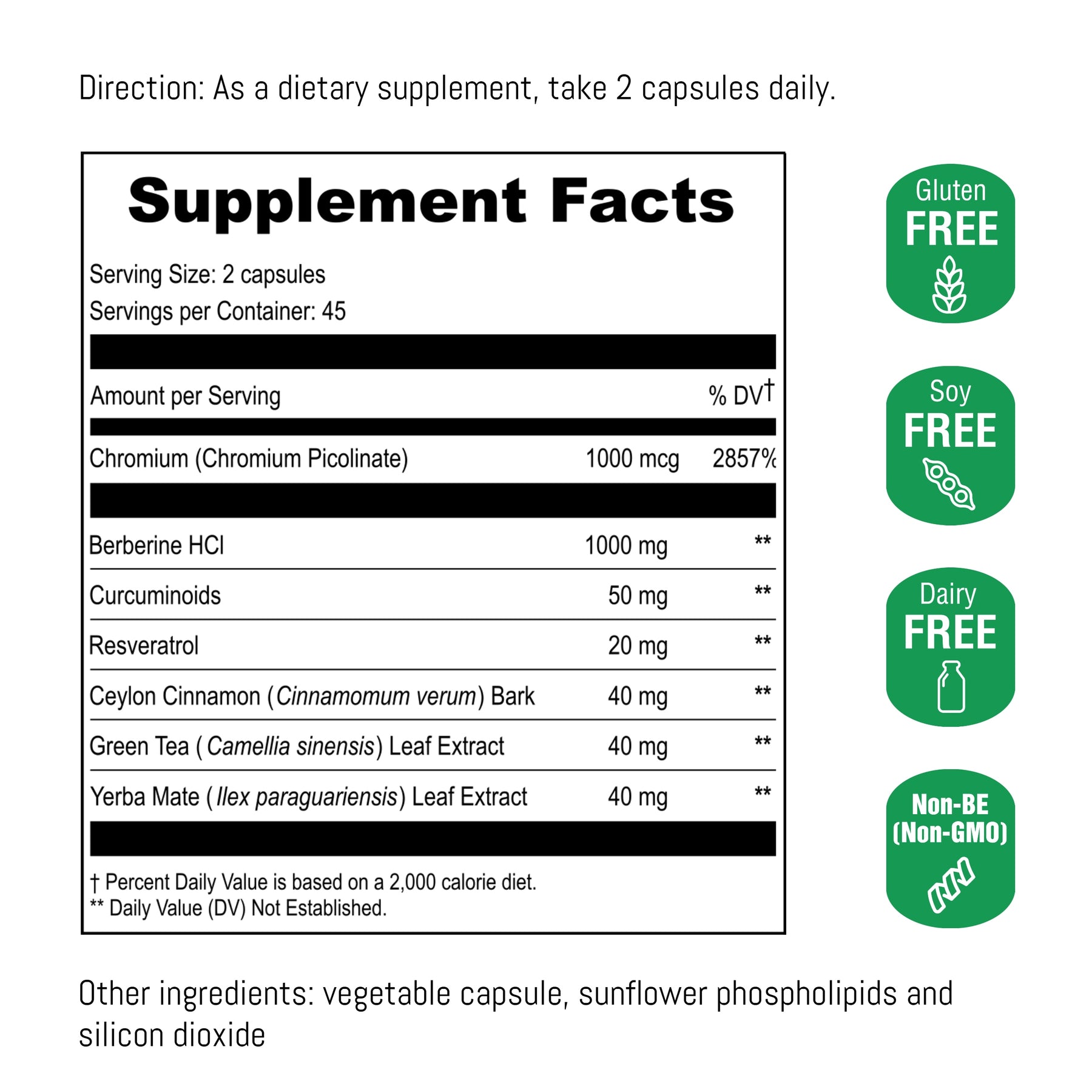 Our product is a super berberine complex originate from Himalaya with synergetic natural ingredients chromium, Ceylon cinnamon, turmeric, resveratrol, green tea and yerba mate.